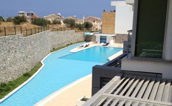 This 3 bedroom apartment in Doğanköy is incredibly luxurious and modern. It has a stylish swimming pool and a fantastic kitchen in the open-plan living area.