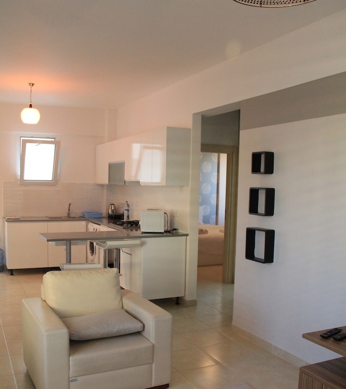 A bright, spacious and modern 2 bedroom apartment on the 3rd floor, with views overlooking the Mediterranean Sea on one side and stunning mountains on the other.