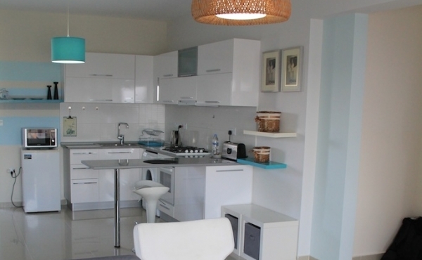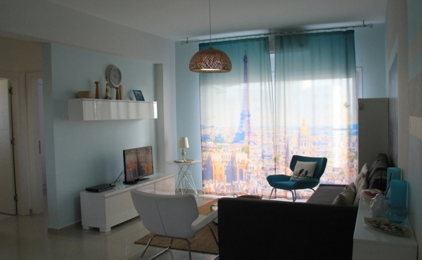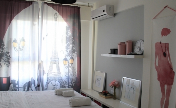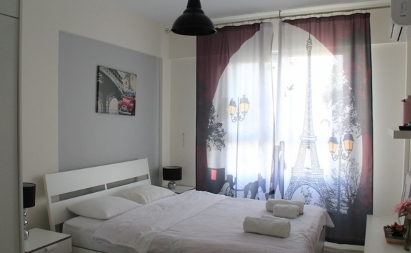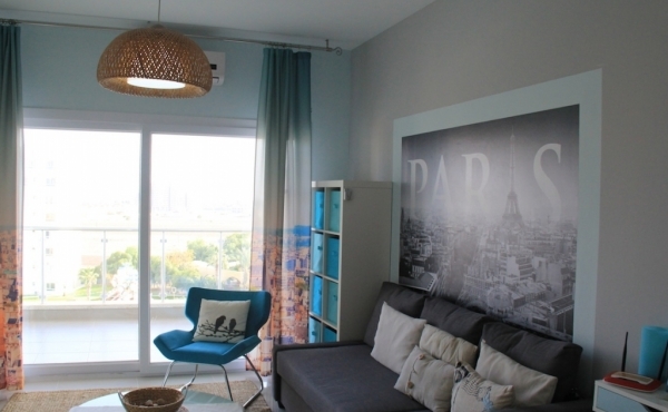 A stylish, Paris-themed 1 bedroom apartment on the 5th floor, with views overlooking the Mediterranean Sea on one side and stunning mountains on the other.
